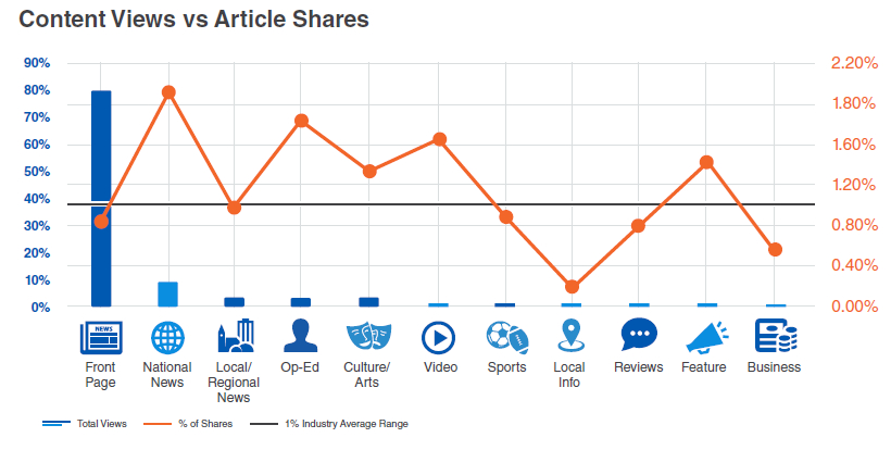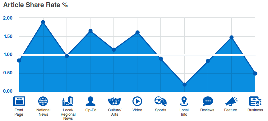 文章分享率介于1~2%之間,國內新聞,社論,視頻等分享率較高
