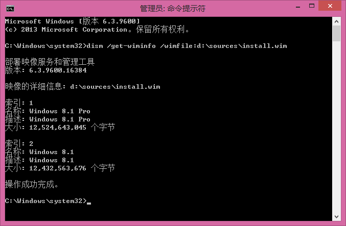 可以查詢D:\sources\install.wim中包含的系統(tǒng)映像以及各自的索引號。