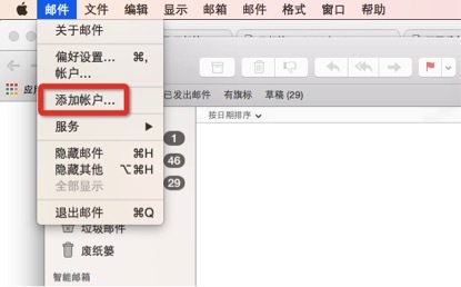 使用蘋果系統MAC電腦自帶客戶端設置阿里云郵箱POP3/IMAP協議的操作步驟: