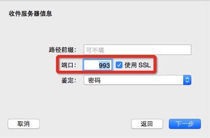 第六步:選擇收件服務器端口,建議使用【SSL加密】,IMAP端口為993,如使用POP模式為465。